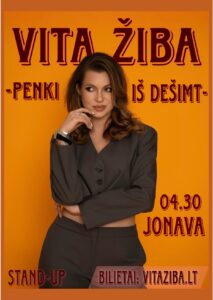 Populiarioji komikė Vita Žiba atvyksta į Jonavą su savo naujausia stand-up programa.