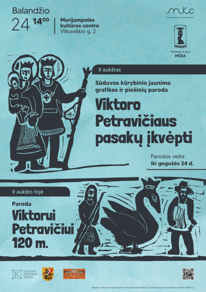 II aukšte bus pristatyta Sūduvos kūrybinio jaunimo grafikos ir piešinių paroda „Viktoro Petravičiaus pasakų įkvėpti“, o II aukšto fojė – paroda „Viktorui Petravičiui 120 m.“ ✨