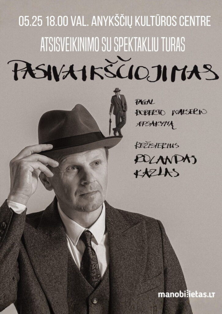 PASIVAIKŠČIOJIMAS. R. Walser (rež. R. Kazlas). Atsisveikinimo su spektakliu turas / ANYKŠČIAI