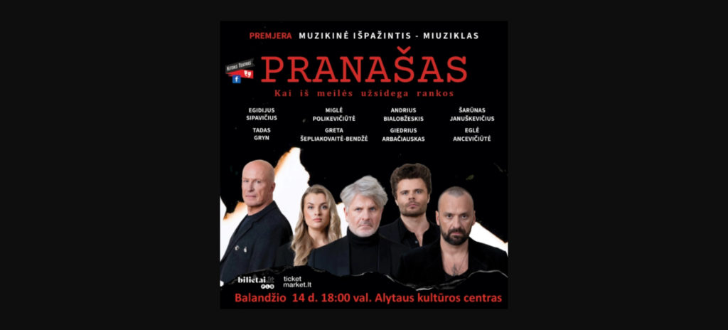 Pirmą kartą Lietuvoje prieš dvidešimt metų pristatytas miuziklas grįžta su nauja kūrybine komanda ir šviežiu atlikėjų kvėpavimu. Kūrinio pagrindą sudaro K. Gibrano knygos filosofija, poeto R. Stankevičiaus žodžiai ir R. Radzevičiaus muzika. Scenoje pasirodys žinomi veidai: Andrius Bialobžeskis, Egidijus Sipavičius bei Tadas Gryn. Tai pasakojimas apie skausmingą meilės trikampį, kuriame susiduria blizgesys ir tikri jausmai. Žiūrovai turės progą išgirsti ir legendinį hitą „Degančios rankos”, atliekamą naujai. Tai ne tik spektaklis, bet ir gili kelionė į žmogaus gyvenimo prasmę per muziką ir žodį.