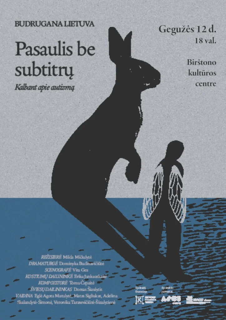 Rankų šešėlių teatro spektaklis „Pasaulis be subtitrų“ pasakoja apie jaunuolį, turintį autizmo spektro sutrikimą. Nepaisant atrastos ramybės oazės vandenyje, vaikinas yra priverstas susidurti su socialiniais iššūkiais ant žemės – nesibaigiantys klausimai, informacijos perteklius, elgesio taisyklės ir nuolatinis spaudimas pritapti. Fragmentiška spektaklio struktūra atvers duris į žmogaus, turinčio autizmo spektro sutrikimą, prisiminimus, kurie leis susipažinti su jo kasdienybe. Didžiausias jo troškimas – būti suprastam. Galbūt mes ne tokie ir skirtingi?