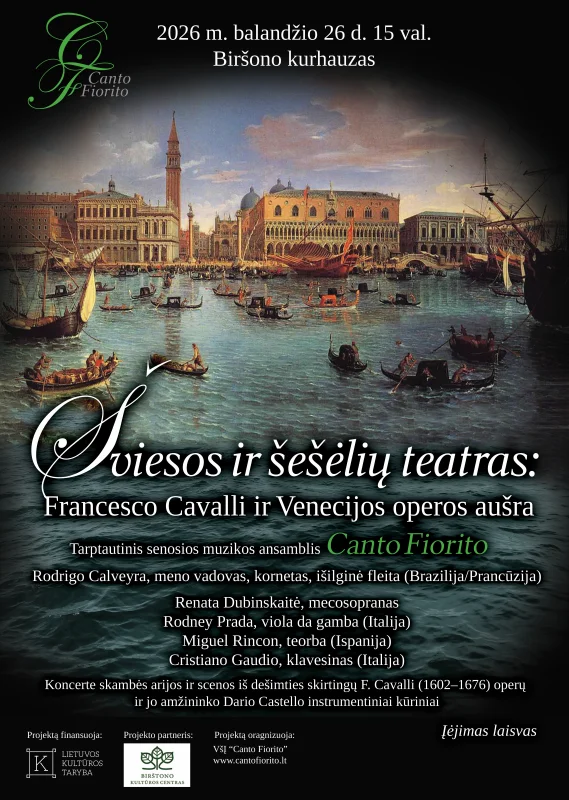 Koncerte skambės arijos ir scenos iš dešimties skirtingų F. Cavalli (1602-1676) operų